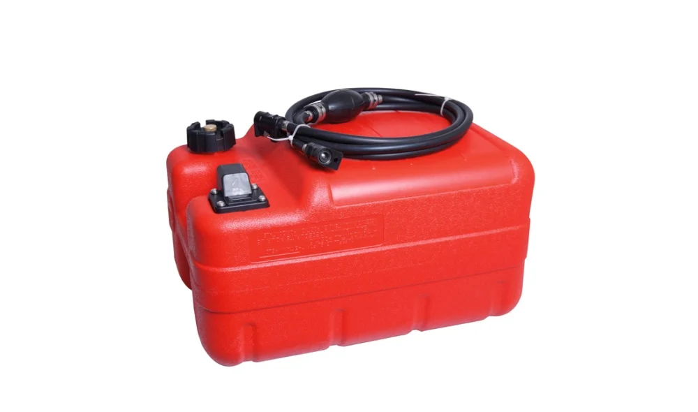 Tankarna levereras med nivåmätare, 3 meter bensinslang med pump och Yamahabensinkopplingar. (Bensinslangen: 2,05 m före pump och 0,85 m efter pump) Bytev. motorkopplingen så att den passar till din motor.\\”